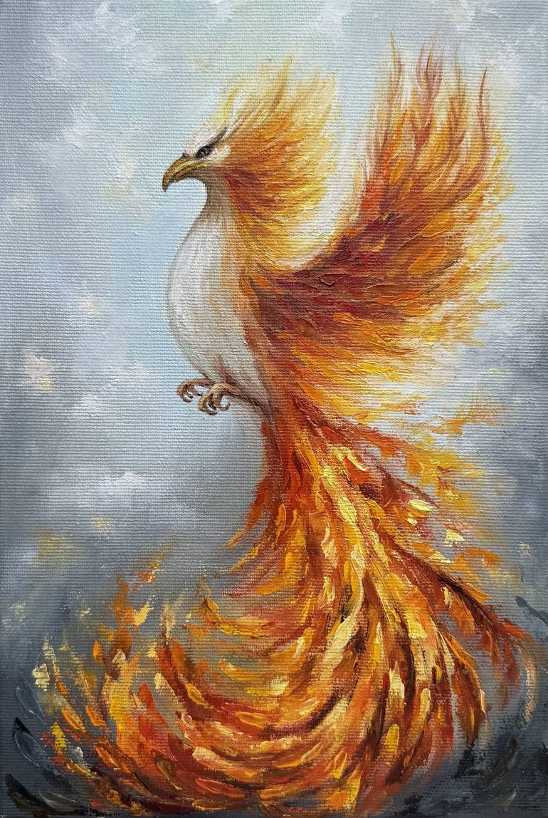 Painting with a fire Phoenix. The Phoenix is a symbol of rebirth and the beginning of a new life. Original painting - painted on stretched canvas. Ready to hang on the wall. No need a frame. Gallery wrapped. Sides painted. On the front side of - the author's signature. Materials: stretched canvas, ...