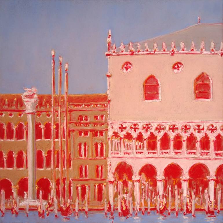 Piazza San Marco is a whirlwind of materials, colors and shapes as abundant as they are spectacular. The Doge's Palace gives it grandeur and serenity while the abundance of objects found there, the columns, the mats, the gondolas and their forests of "paline" transform the square into a precious car...