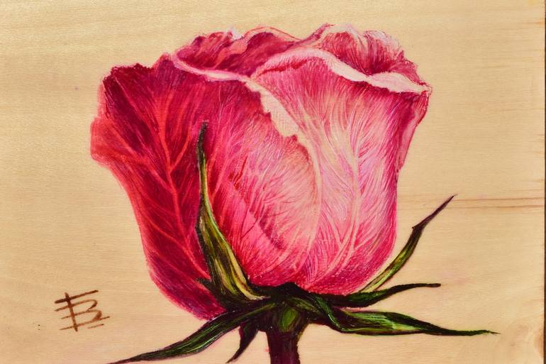 Beautiful bud of dark pink roses. She basks in the warm rays of the setting sun. Streaks on rose petals look like blood vessels. It absorbs the warm sunshine and transforms them into a unique sweet aroma.