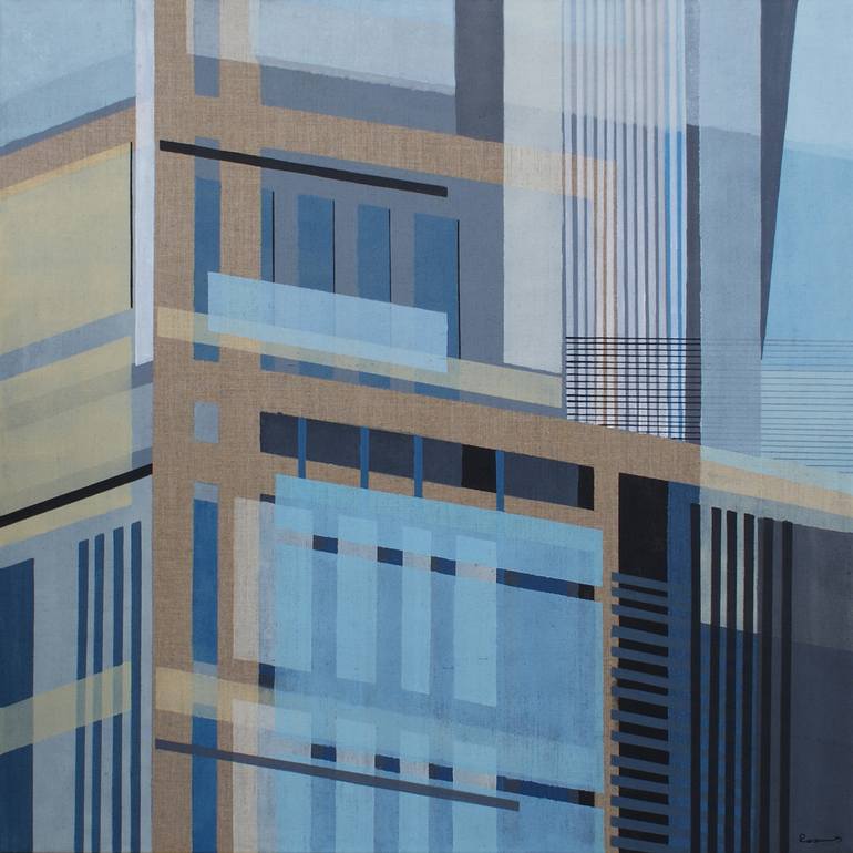 A fresh view over Franfurt am Main. Painted on a "raw" linnen canvas which is composed in the painting giving extra three dimentional look. A bright and sunny picture with a modern touch would go well in any kind of an office of apartment. Painting took part in "Monuments" exhibition in Poland on ma...