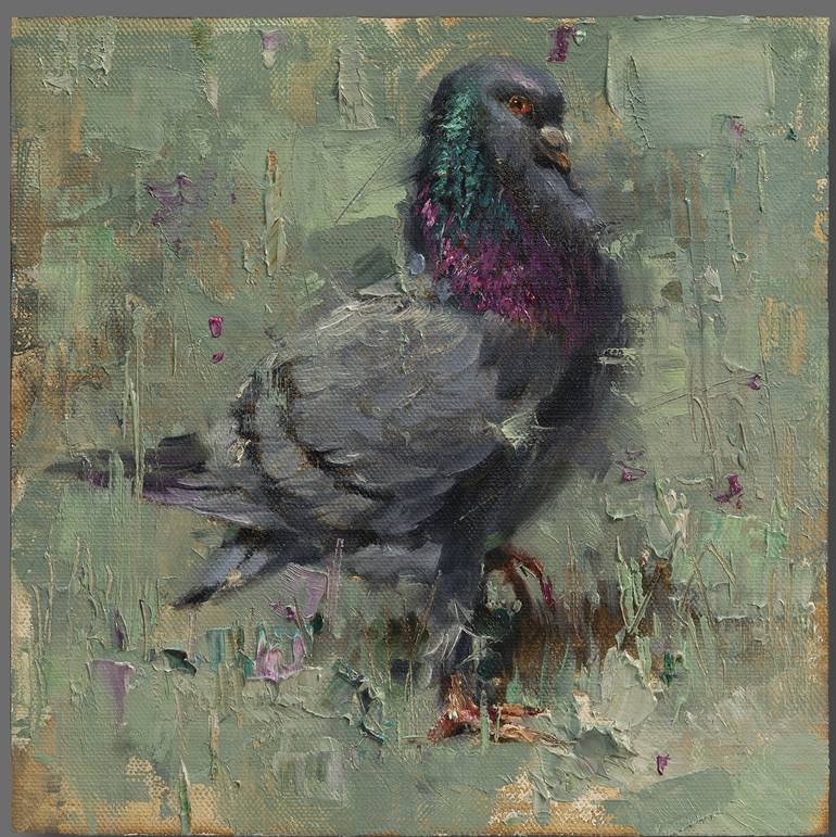 This pigeon was unique, I saw him on the street and took a photo of him, so that's how this artwork came out. Original oil painting. Name: "Pigeon" Size: 8 x 8 Canvas on plywood. I appreciate for visiting my store! If you have any questions, feel free to contact me!