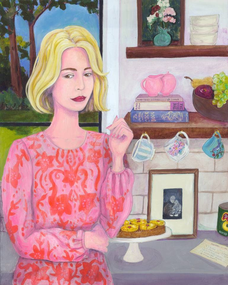 "Pineapple Upside Down Cake" circles around my own memories (my Mom's cookbooks on the shelf, the cake, the recipe) and how expectations don't always play out (The Bell Jar on the shelf with the cookbooks). Irony is my happy place. Denise Brook is a contemporary artist who lives and works in San Di...