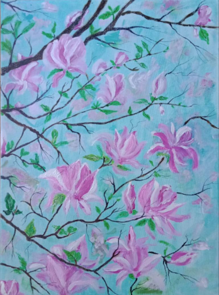 The beautiful Pink Magnolia tree outside my studio window, inspired me.