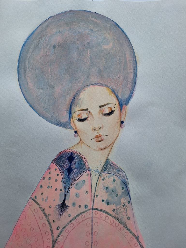 Acrylic, pencil, ink and watercolour on acid free paper. This picture is a part of my portrait series.