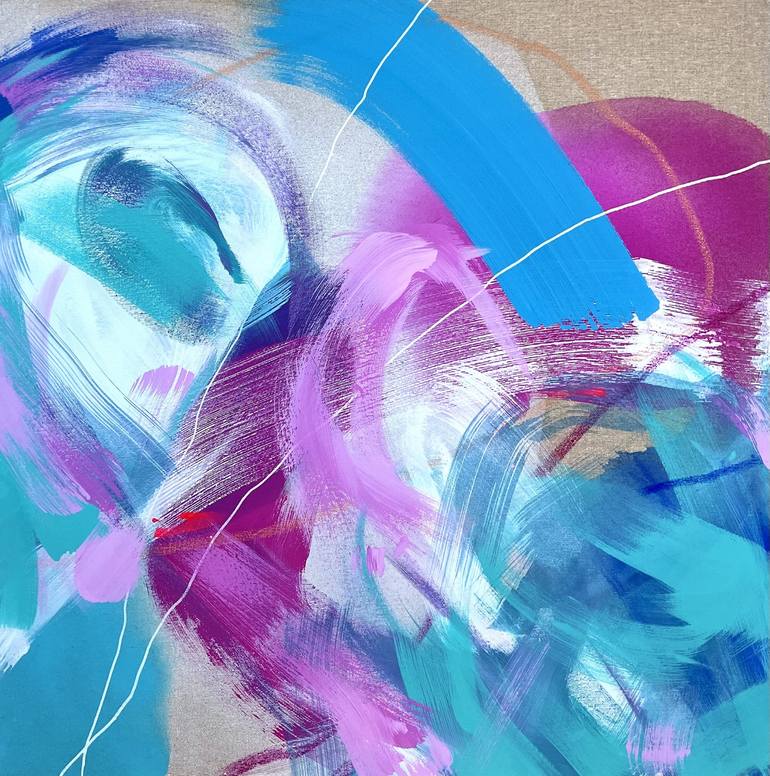 This painting is inspired by the turquiose-blue sea, white sand, purple skies and overall tropical & exotic scents of this planet. This painting is mixed media /acrylic and chalk on stretched canvas), ready to hang.