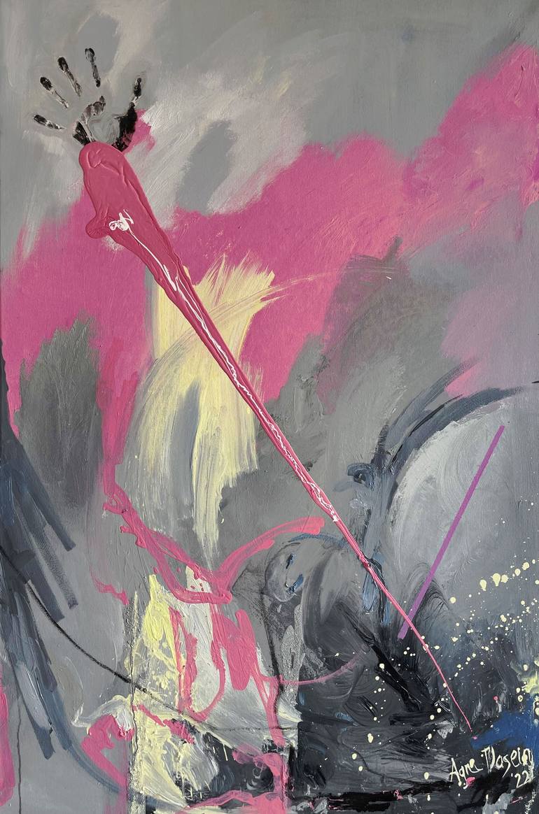 The original abstract oil pink painting "Untitled 1" by Austrian- Russian painter Agni Dasein, 2022. Size:120x80x2 cm. Soft vibes serendipity and calm. What will you find here the horse that ride away or rose from your loved one? Perfectly complements stylish or simple interior. Beauty in details...