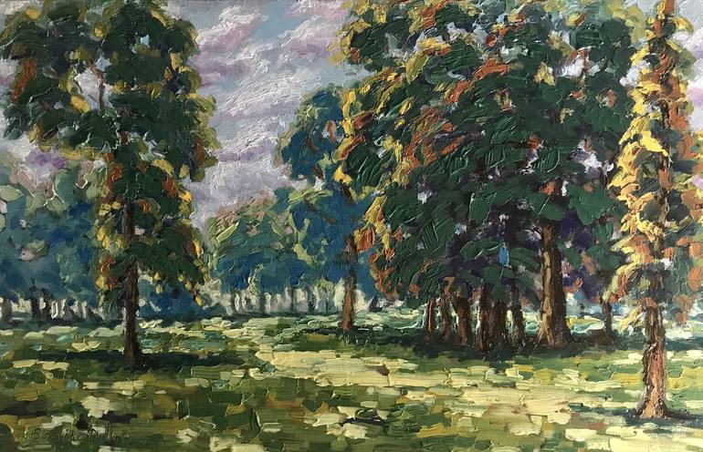 I live on golf course that I use for my inspiration. I wanted to paint it as Impressionism for a while and finally this is a result of my imagination. Painting is framed and ready to hang. It’s the wooden frame 16” Hx20”W
