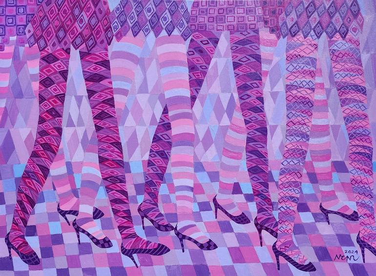 The art painting depicts beautiful girls, beautiful long legs in pink, beautiful bodies, with beautiful warm colors, depicting a bright space. Acrylic paintings on canvas are very durable and beautiful, giving you a good choice to hang in your home. The painting will be shipped to your home in a ver...