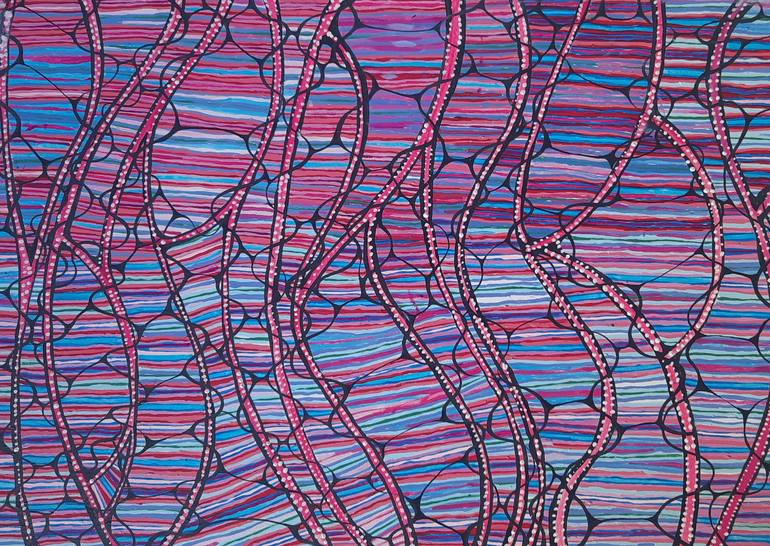 Oil paiting on canvass. Abstract movment. Lines, pink and love