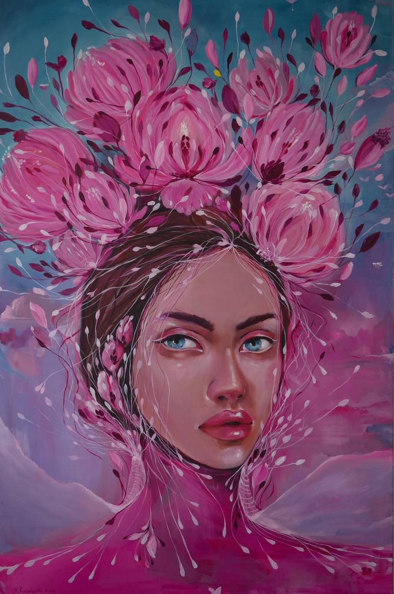 A painting-reflections about a thought as such. When I wrote it, I imagined how an idea or thought comes and where it comes from. Some thoughts come and transform into something beautiful like flowers, some just exist, some of them are unique. In the background is a place between heaven and earth, m...