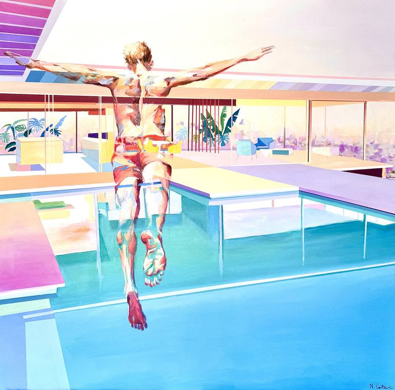 The body that I paint is deliberately unfinished, he blend into the landscape , become a sort of metaphor to capture a specific moment of life. The abstract landscape in which the body evolve appear to be finished although minimalist with a choice of colours intended to convey an impression is spac...