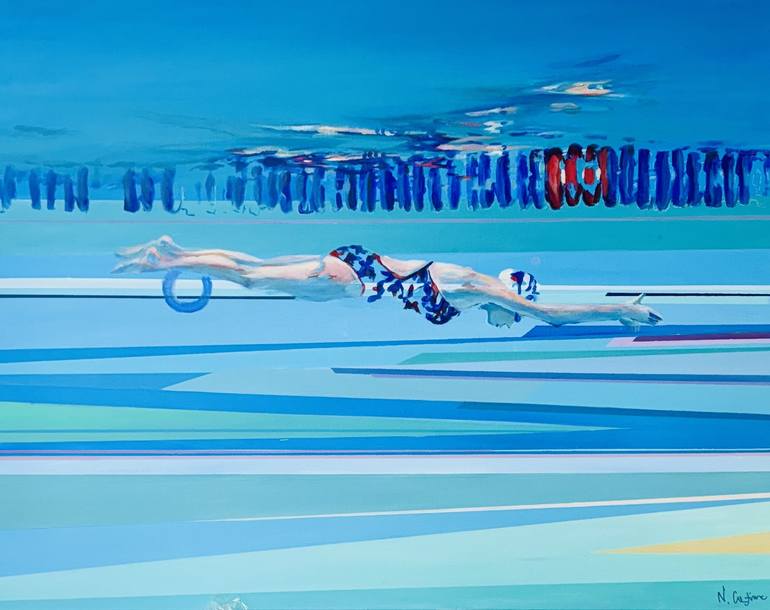 I got inspired by my friend Christiane, the beauty of her mouvement the body , the reflection whichever generate and natural abstraction. I work many layers, the background in an abstract way were I come with unfinished body Acrylic on canvas