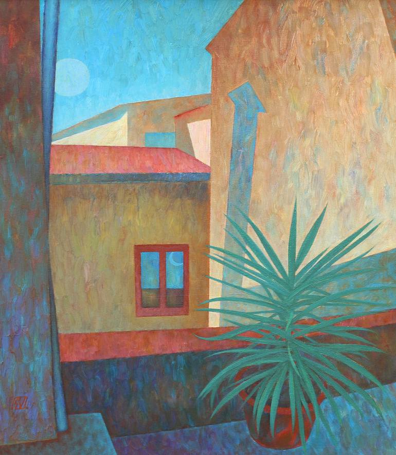 "Pisciotta, Via Pendino" 56x49cm (63x56cm framed) is an exquisite oil on canvas painting that captures the essence of the Italian landscape. This artwork began its life "en plein air," embracing the tradition of painting outdoors to directly capture the light & atmosphere. The artist completed the p...
