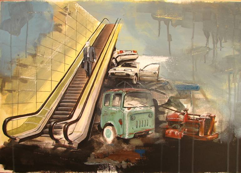 Stefan Doru Moscu is a visual artist, born in 1982, and his work covers both painting and sculpture. His artworks takes a critical view of social, political and cultural issues. He intends to deconstruct the reality, fairy tales, old photo that depict childhood and adult culture, in a discourse that challenge the existing political, economical, social and technological paradigms.. Additionally, degraded materials are placed and highlighted in some characters who are in different states of mind or different emotions.