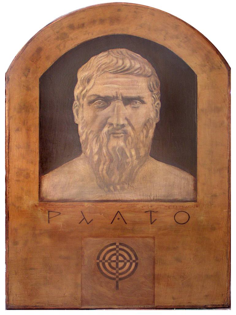 This Portrait of Plato is one of 3 works so far of a series I call "The Masters". It was painted with oil paint on a hand crafted arched top wooden frame over venetian plaster to resemble the classic art of his time. The symbol of concentric circles below his portrait represents the lost city of Atl...