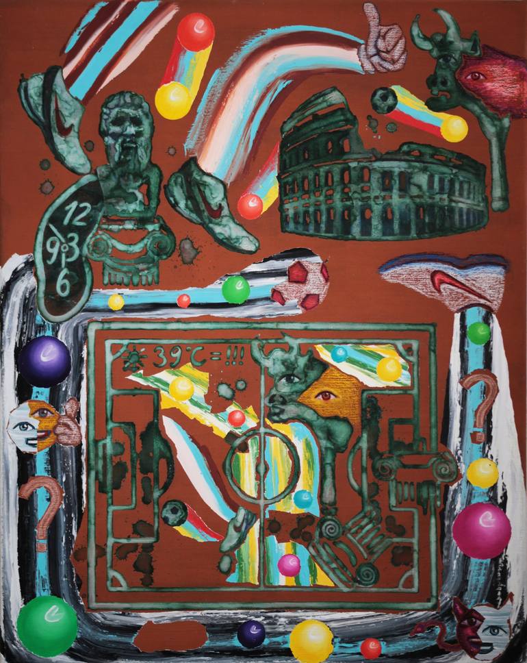 1. The work is a reference to history and paraphrases. Names such as Pablo Picasso Salvador Dalí and Andy Warhol were the inspiration for the painting . The work contains many classical and historical references. 2. The viewer can definitely see the disturbed color layers. In the picture you can se...