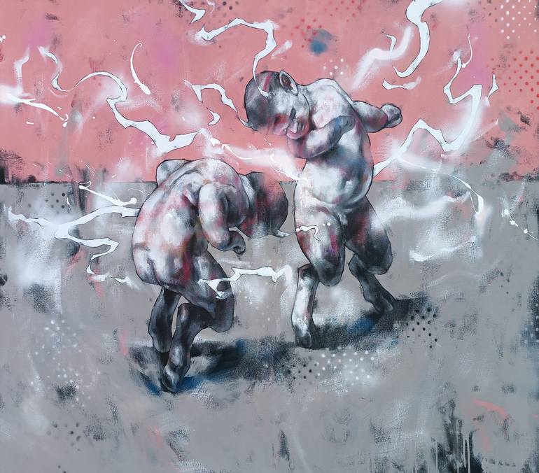 I reconstruct and transform idealized visual codes from the great historic eras. I attempt to follow the changes they go through, manipulate them and with them, from a more distant position, in terms of time and history. At times, I play with the canons of the past, treating them with nostalgia or irony, aware of their changeability and instability. To achieve this, I use the tools of the movements of the margins, often using spray paint and other materials for expression that are favoured by these movements. My hope is to establish a sort of meeting between seemingly opposing esthetic and art strategies in my works. The turn of the century and the culture of street art, two very distant and, at first glance, different worlds meet and intertwine in my works. I attempt to find the connections between the past and the present – their parallels and collisions.