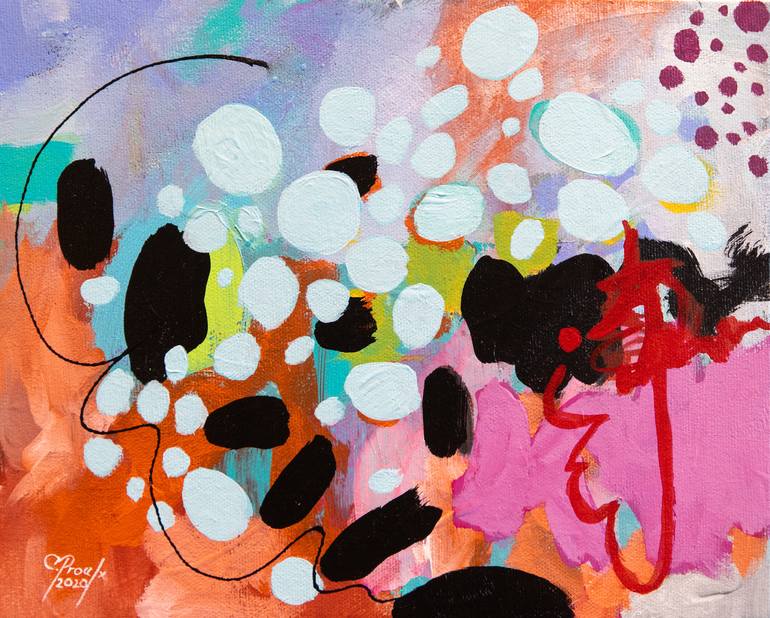 Acrylic on stretched canvas 25 cm X 20 cm X 1,5 cm (10 inches X 8 inches X 0,8 inch) A colourful small abstract painting with lots of dots. Would go very well in a child’s room Shipped in a cardboard box with a certificate of authenticity. NOTE: The images in home decor are for display purposes ...