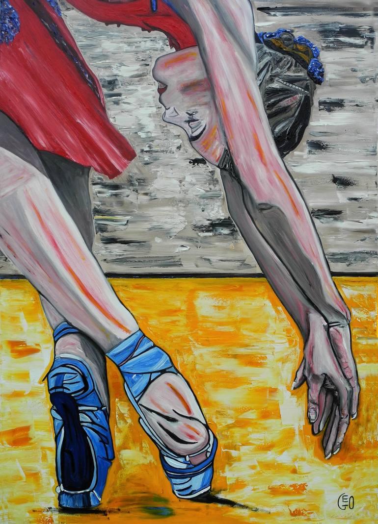 In this oil painting I mix figurative elements with a touch of impressionism to capture the mesmerizing dynamism and elegance of ballet dance. The bold colors and expressive lines give the artwork a vibrant energy. This work celebrates the beauty of the human form in motion and the emotional power o...