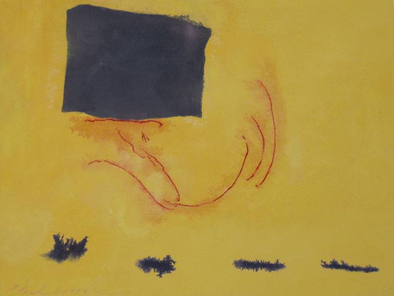 Watercolor and gouache on 140 lb. 100% rag watercolor paper. One of a series of paintings with a vocabulary of forms and elements that operate very freely on a large stage.These paintings contain highly abstracted beasties, anthropomorphic forms, urges, glows. They are rarely static. Things happen...
