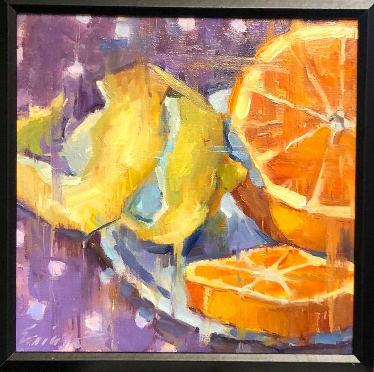 100% original, hand painted fine art, one-of-a-kind by Emiliya Lane Size 12x12 Colorful Still Life "Polka Dots" painting would be a great addition to your original oil paintings collection. Original painting, created on aluminum board. On the front side of the canvas wall art - the author's signa...