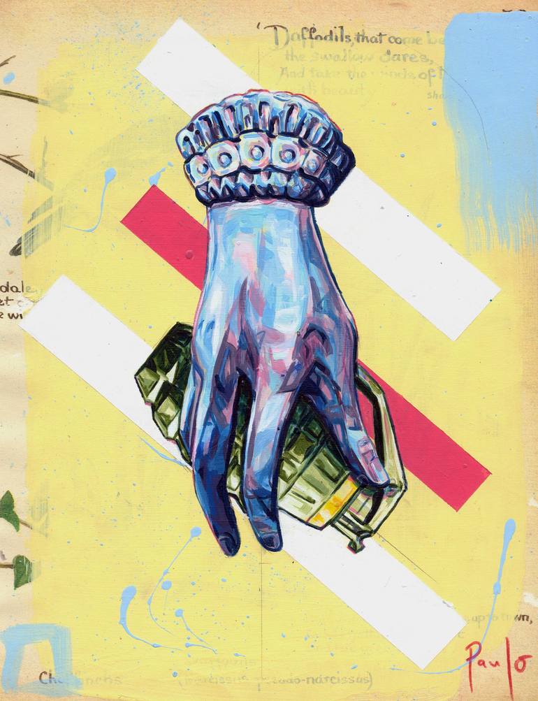 Manchester born, Lyon based. From rainy (sometimes breathtakingly beautiful) England to a truly stunning French city. After completed my fine art degree in Leeds, a mixed success, I was entirely lost. With a few t-shirt designs I went looking for a screen printer and ended up running a small eco-friendly clothing brand for five years. It was tough work, printing, marketing and designing everything myself. However it allowed me the flexibility to continue my artistic practise and have lots of face to face time with end users. After half a decade of breathing in much too much white spirit in an unventilated studio and a few physio appointments, Brexit gave me the kick up the arse to finally move to France to start a new chapter. Now I am lucky enough to paint and draw full time. The propane to my flame of motivation is injustice. I'm fully of the belief that an artist must pile their soap boxes high and shout to anyone who will listen. That doesn't stop me adding a bit of humour to the mix, what else shrivels the manhood of those abusing power more than laughter? To balance out the sometimes poisonous nature of this work, I like to step back and paint stunning landscapes I am lucky enough to stumble upon. Quality of light is very much a draw and this ephemeral beauty reminds me what in the world is worth fighting for. Recently I have been taking a lot fo inspiration from my wanderings, bike rides and skates around Lyon. It is choc full of incredible carvings, masonry and woodwork. I like to take sections of these old artworks and incorporate them in my own piece. I find the melding of old filigree and modern imagery and colour a satisfying metaphor for what I think my own practice is, old techniques twisted to modern day problems.