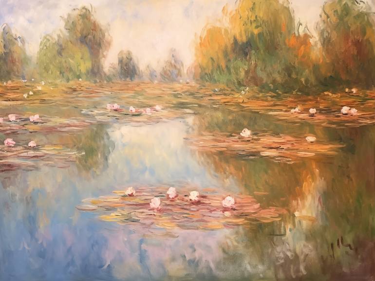 This digital painting featuring a beautiful autumn pond with water lilies in secret garden was inspired by the stunning masterpieces in the Impressionist style of Claude Monet. You can order print on canvas or fine art paper of this digital painting in different sizes. Thank you for your interest!