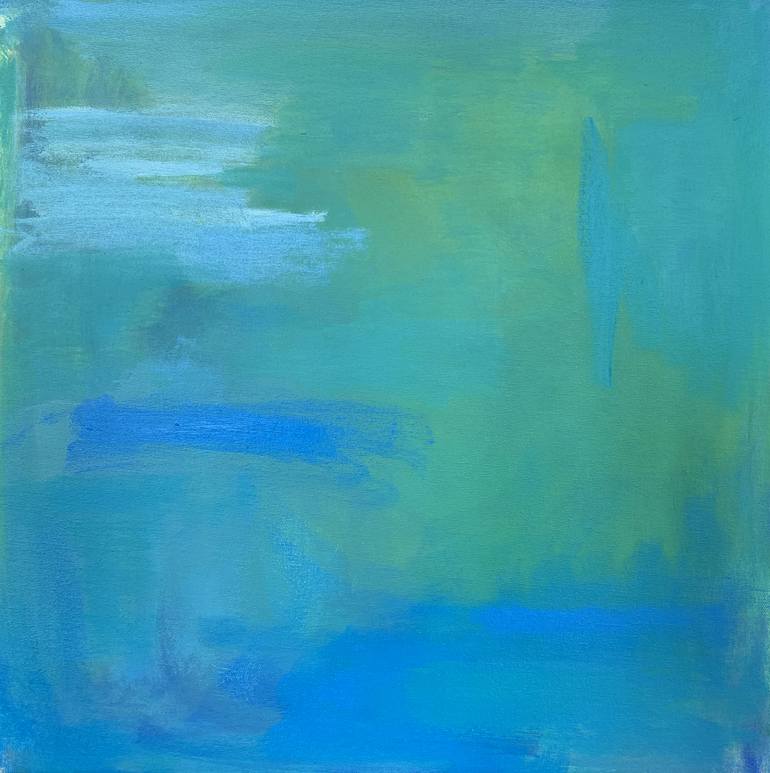 "Pond" is an abstract expressionist painting on canvas by popular US artist, Trixie Pitts. The look of the painting is both subtle and bold at the same time. Inspired by Monet as well as mid-century abstract expressionist, color field painters. The palette is limited to blue, turquoise, soft green, ...
