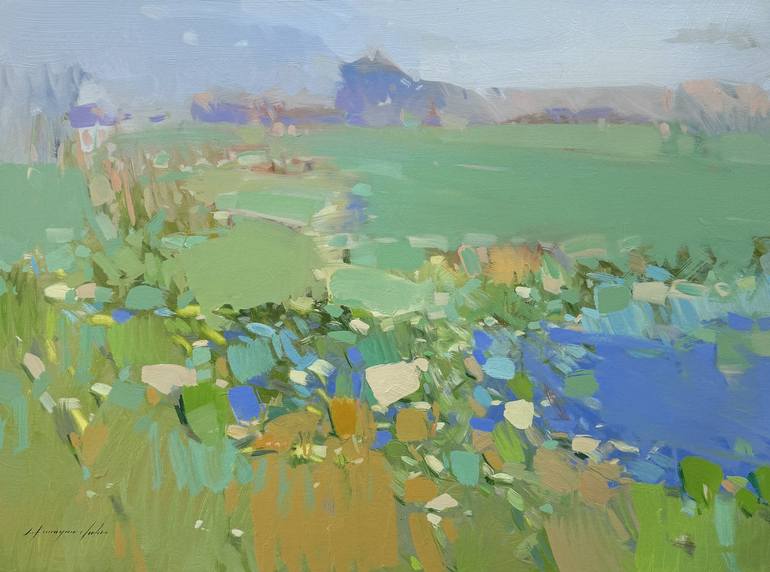 Artist: Vahe Yeremyan Work: Original Oil Painting, Handmade Artwork, One of a Kind Medium: Oil on Canvas Year: 2023 Style: Impressionism, Subject: Pond, Size: 23.5" x 32" x 0.8'' inch, (60x81x2 cm), Unframed, Stretched on Wooden Bar, Gallery Wrapped, Ready to Hang. Yeremyan is an American A...