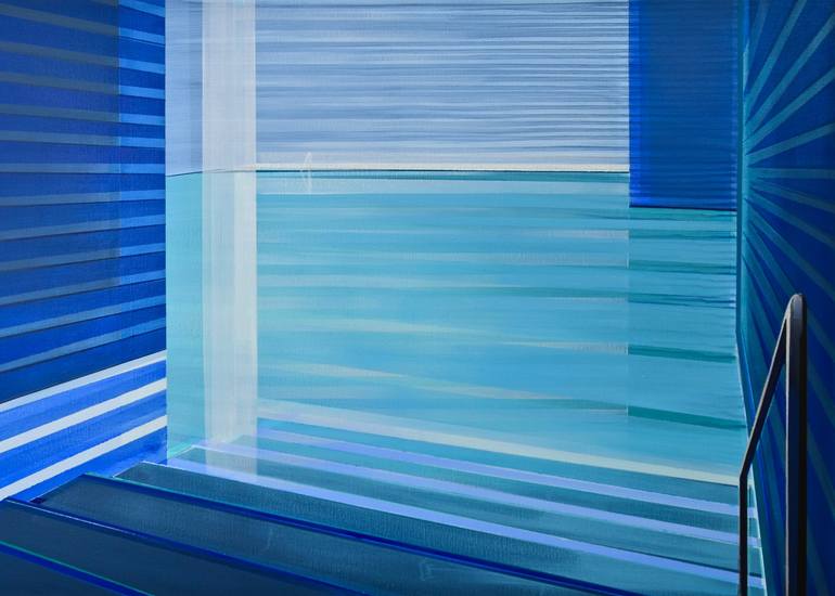 Cécile van Hanja, born in Corsica in 1964 and a graduate of the Gerrit Rietveld Academie in Amsterdam in 1993, is an artist based in Haarlem, Netherlands. Her artistic journey has been deeply influenced by her formative years spent in the South of France, later finding inspiration in the structured landscapes of the Netherlands. Van Hanja’s works epitomize the principles of ‘De Stijl’ and Modernism, notably influenced by Piet Mondrian’s straight lines and the movement’s pursuit of harmony and unity. Her fascination with the ideals of hope and prosperity stemming from these 20th-century movements is evident in her paintings, which often depict modern architectural compositions characterized by rhythmic patterns of verticals and horizontals. Emphasizing intangible aspects by creating open spaces, her paintings feature transparent walls and floors, leading to an interplay of reflections and vanishing points. The deliberate use of thin layers of acrylic and oil paint adds depth and luminosity to her works, allowing underlying colors to shine through and preventing the architectural compositions from becoming static. Cécile van Hanja’s art is renowned for its multi-colored labyrinth of spaces, creating an illusion of depth and complexity within a structured framework of lines and reflections. Her compositions invite viewers to explore the blend between rational and intuitive thinking, offering a unique perspective on modern architectural landscapes through her layered and transparent artistic approach. Her works are displayed in various private collections globally and represented by prominent galleries such as the Fremin Gallery in New York and Saatchi Art’s Samsung Architecture collection. Additionally, Cécile also accepts commissions. If you reside in a modern home and wish to commission a painting, you can submit a request through the Saatchi team, who will facilitate communication with the artist.