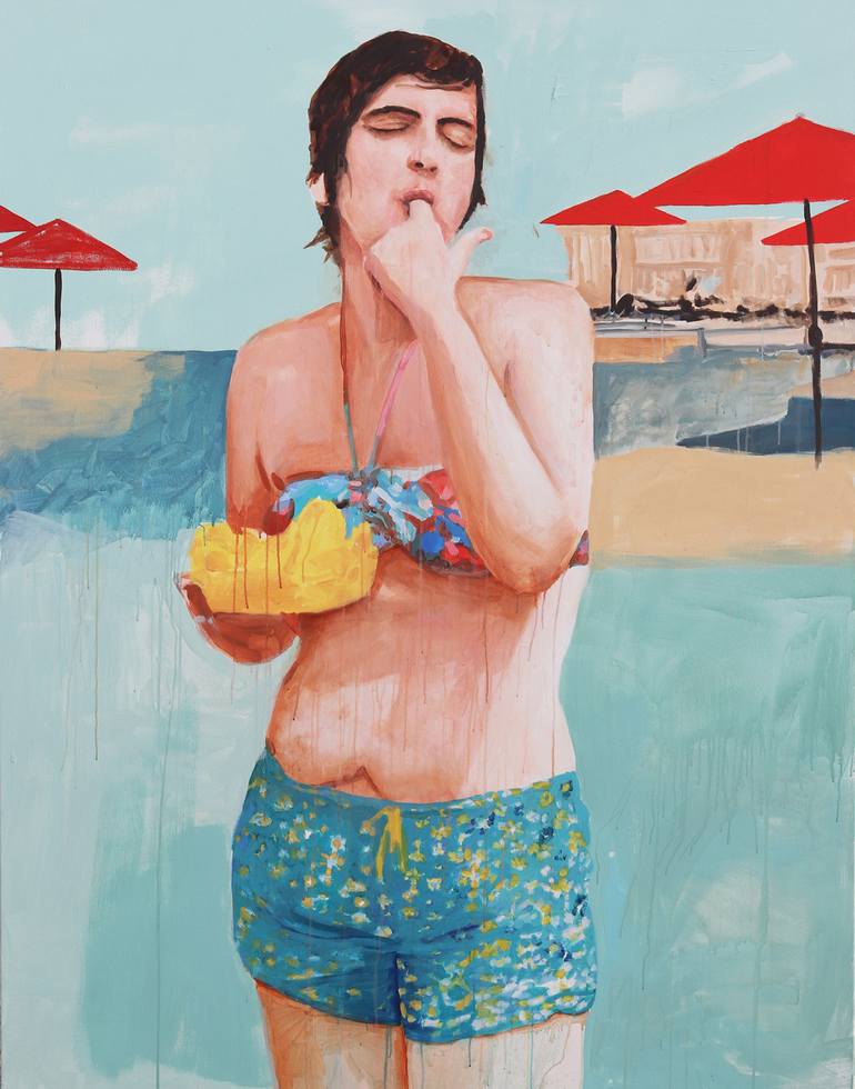 I paint women. I see so much beauty in them. I represent them. They are my muses. I am enamored by that unspoken environment that happens when a group of women are together, comfortable with their bodies, and each other just hanging at the pool. It is most certainly a privilege to witness.