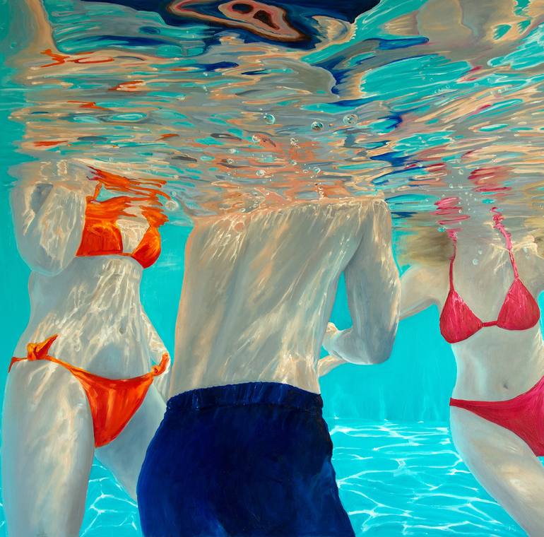 An original painting by Amy Devlin. My process starts with taking the photographs I work from, I like to experiment with angles and light in the photographing. Every inch of the canvas has multiple layers on to build up the feeling of light, water and body, every layer focusing in on more detail unt...