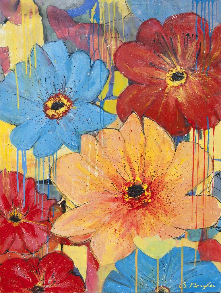 My creation is a lively, contemporary, and dynamic piece that radiates the bold and beautiful essence of nature, expressing its audacious presence with joy and power.