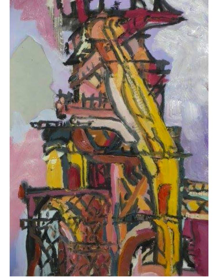 Naked, the landscape speaks of and for itself. Through exploring the underlying frenetic activity, complex movement and changes that have inhabited a landscape, I explore its evolution and transformations as a living entity and witness to human activity. Although they rarely include the human figure I consider landscapes to be human in their formation and sensuality. The human figure itself has similar qualities; tension and movement; order and rules, including and revealing contrasts and idiosyncrasies. Likewise, the portrait. In my industrial drawings and paintings, I like to explore the complex functions and pattern-forms of heavy apparatus and machinery. I find myself fascinated by the contradictory qualities, from abrupt shifts between the bold immensity of furnaces, cooling towers and refineries to the fine, well-defined lines of diagrams. The gigantic and the minute share a structural fluidity that informs my practice. The finished work is an exploration of process and change as basic materials, paint, charcoal, pastels – including the subject matter itself – is transmuted through a responsive working and reworking of theme, figure and movement. Changes are both fundamental and amplifying and very often take on a life of their own. The resulting artwork is a heretical broth of lines, dynamism and emotion. I find I respond to the same dynamic in grand vistas of architecture as well as in the aerial views of cities; in a face or in a life model.
