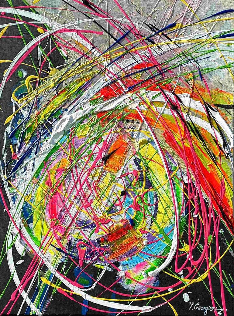 A liberating abstract, wonderful and unique, an emotion caught in the moment ... With different layers of brushstrokes and sprayed in a symphonic colubus, amazing on the wall of an office or living room. Framed (black with little passepartout), still without photo of the frame because it is not rea...
