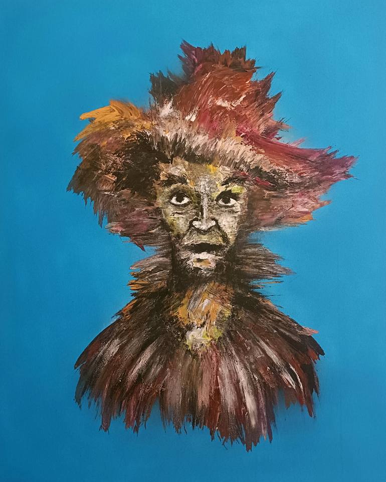 This piece from the Portrait Collection captures the raw complexity of human emotion and beauty, blending expressive brushstrokes and finger strokes with dynamic sprays and color. Acrylic on Cotton 300g/m².
