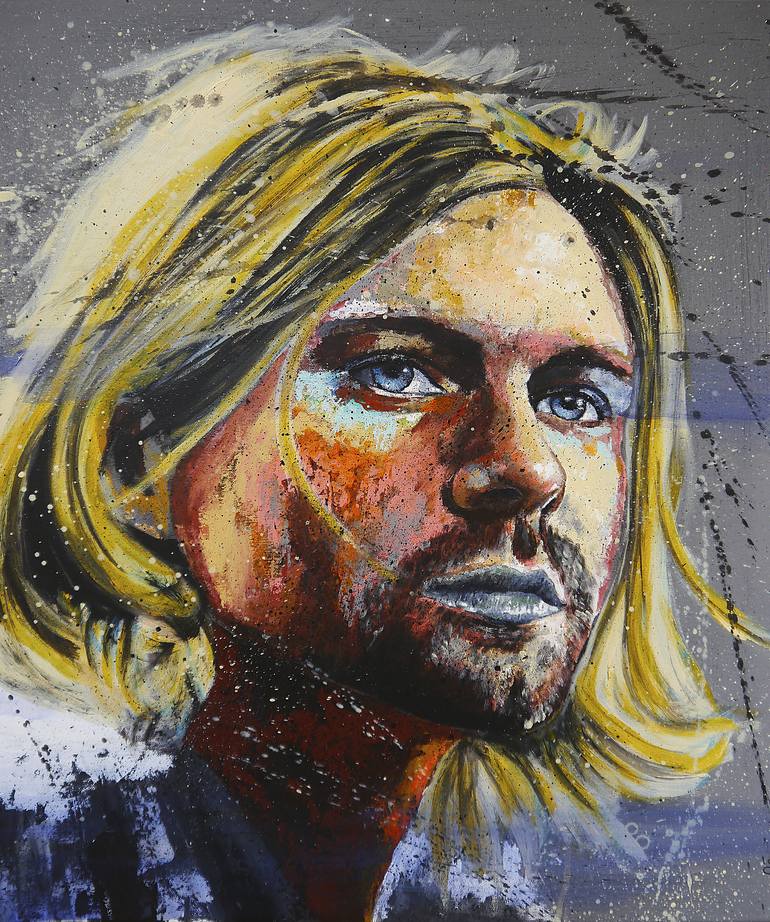 Portrait Kurt Cobain "Loud me" I miss Nirvana, and especially Kurt Cobain. All the portrait was painted ...with Nirvana songs Technique: oil, acrylics, watercolor and ink on Canvas F20 73x60cm ❶ → ORIGINAL ART SIGNED, CERTIFICATE OF AUTHENTICITY INCLUDED ❷ → ACRYLIC (Sennelier), OIL (Winsor &N...