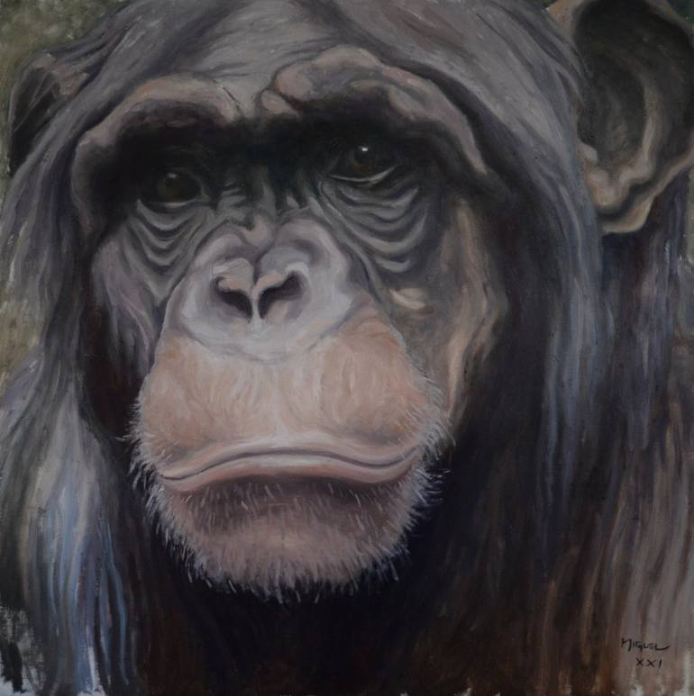 Portrait d'un chimpanze adulte avec une certaine émotion dans le regard