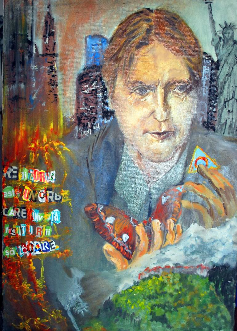 I was of that butterfly-s that learned to fly by building in dreams . The portrait is narrative and speaks about Romania and USA as two opposite words looking from freedom from two very different positions .