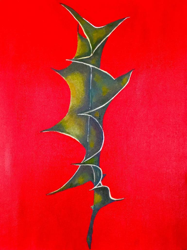 Portrait of Holly Leaf with Red is made with oil, on canvas. Ready to hang, no framing required, all fixtures supplied. Inspired by Fernandez Leger. It is a single leaf, extracted from all surroundings or roots. It lies isolated on a plain background. The holly is an impersonal beauty, a secula...