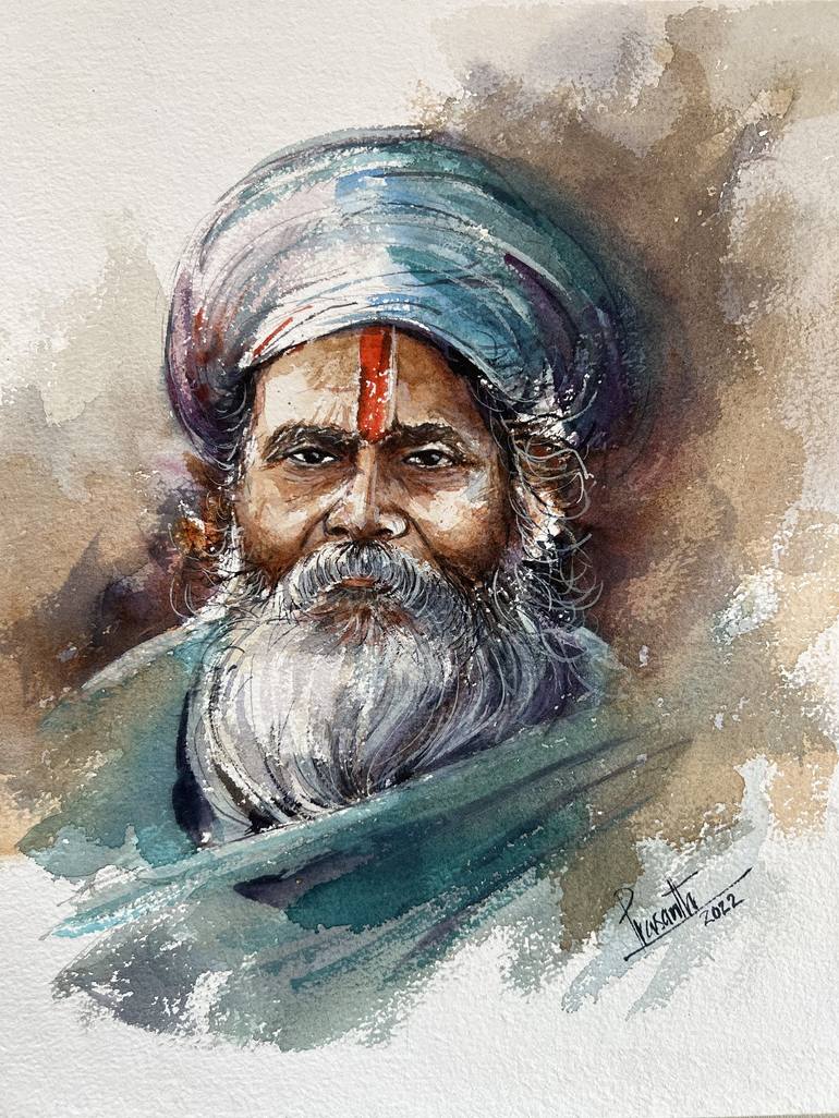 This is my travel painting series painting I met many people on the way to north and Rajasthan. Indian Monks are very familiar to all with their way of dressing and expressive face features. Material: 300gsm 100% cotton cold pressed fine grain watercolour paper Watercolor brand used Winsor and New...