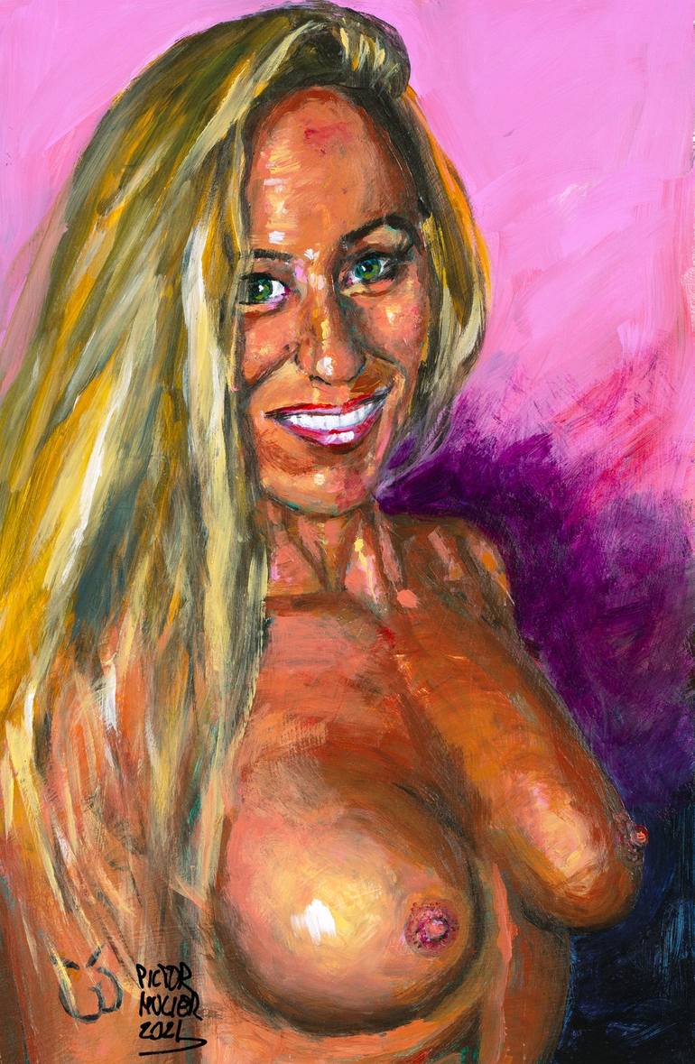 Through my painting, I explore an aspect of the feminine sexuality: exhibtionism. My paintings express intimate and bold feelings of women. Everything began quite casually. One day, a woman asked if she might be my model for a nude portrait. She did not want money, only to know that people would look at the painting. It was her pleasure. So I painted her in a pose that expressed her sexuality. We met several times. Then a friend of hers contacted me... and so on up to today. Even in these modern times, sex continues being a disturbing topic. It is taboo. Hardly any galleries want to exhibit my paintings, due to the erotic content. And so I have shown my work at alternative fairs and venues. Both my models and I have been insulted and despised. I do not care. For me, feminine exhibitionism is fascinating. And I feel proud of my art which honors the sexuality of my models and materializes into a painting: an erotic fantasy. In strict confidence, I accept commissions of nude paintings and erotic portraits. I do not ask for applause or understanding. I only ask for respect.