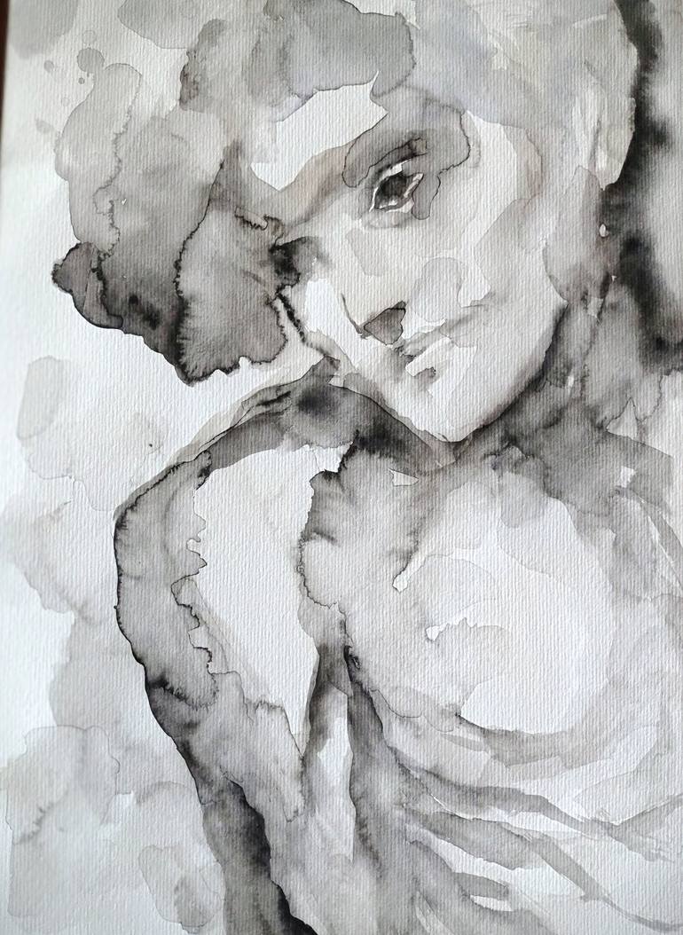 Painting Watercolor dancer fine art black and white expressionism
