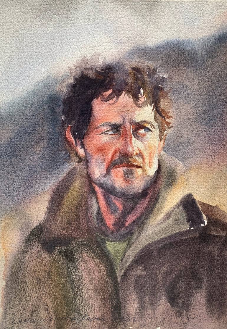 "Portrait of a Shepherd" is a watercolor masterpiece on cotton paper. It artfully portrays a wise man in his forties, his face a testament to a life lived in harmony with nature. Weathered features tell of tending flocks or fields, embodying the pastoral essence. Warm earthy tones harmonize with det...
