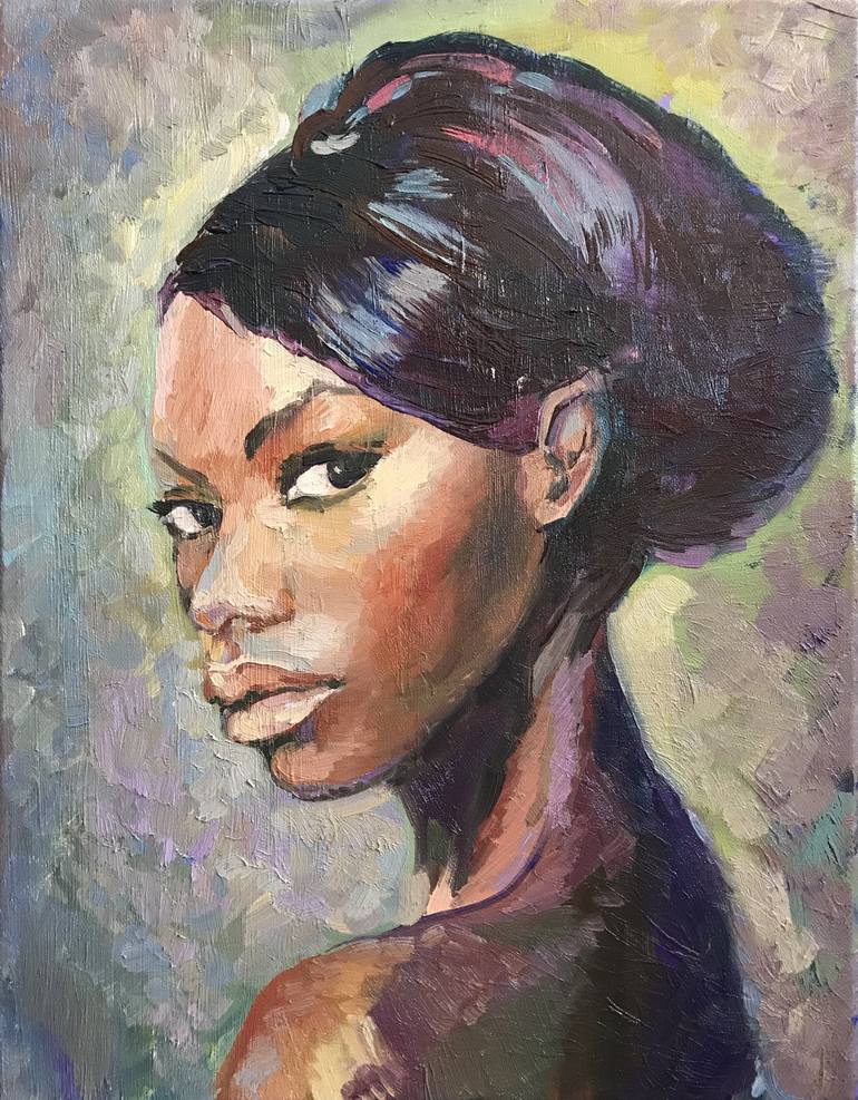 Portait black girls . Oil on canvas, year of creation 2020 .