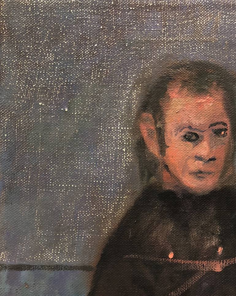 Original Steve Binetti painting. Title: „Portrait With Dressing Gown“. Oil on canvas. Signed on the backside „Steve Binetti 2003“. Size: 40 x 50 x 4 cm. (please note: dimensions are given in centimeters) Weight: ca. 800 gr. Shipping weight: ca. 4500 gr. Condition: perfect, looks great when frame...