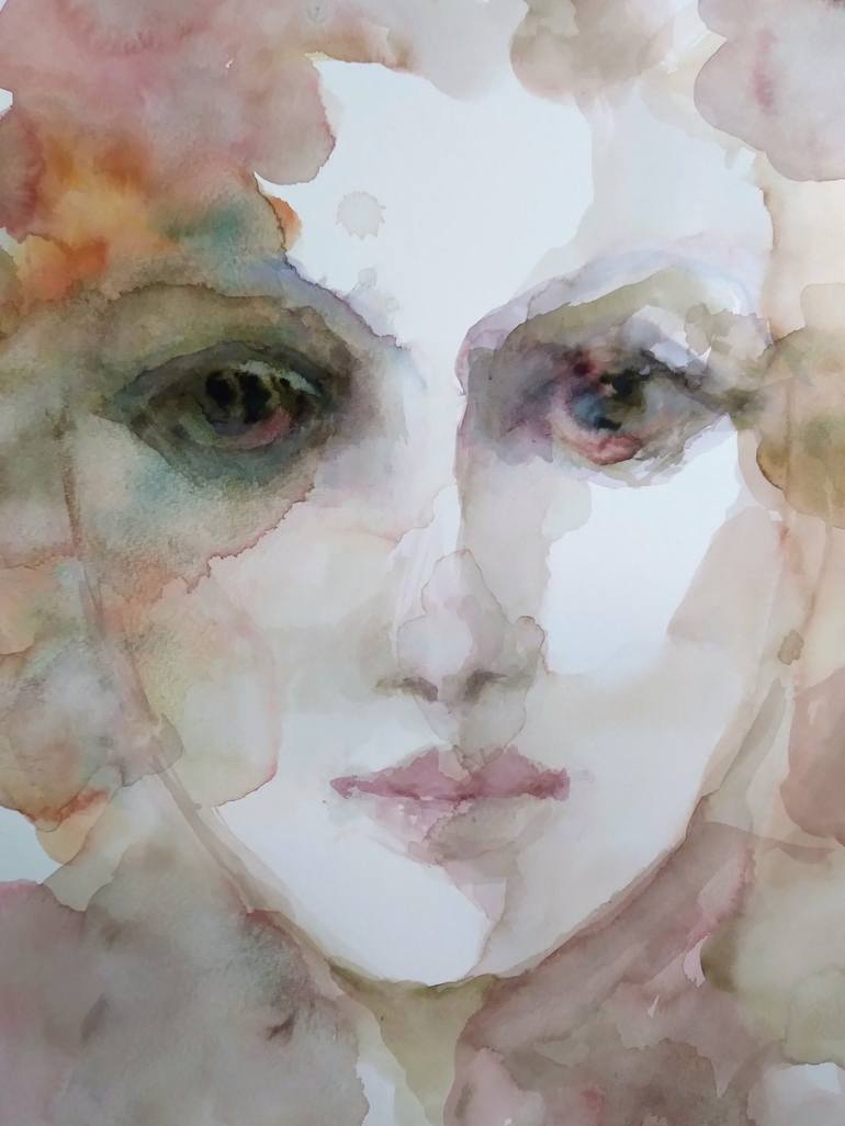 Painting, watercolor on paper, woman face, portrait, fine art