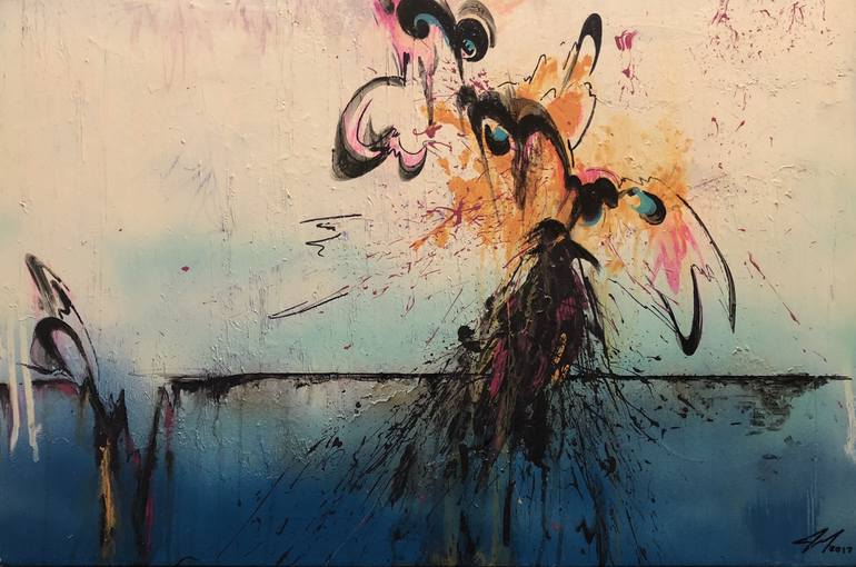 Like the Pacific Ocean that rejuvenates and frees my creative impulses, painting serves me with an escape into a world of no rules, distractions, or negativity. There is only acceptance and deliberate liberation from oppressive constraints and expectations. I begin each new work without a predetermined outcome, but in the painting process my voice and story are visually heard through abstract shapes, distinctive color choices and occasional figurative focal points.