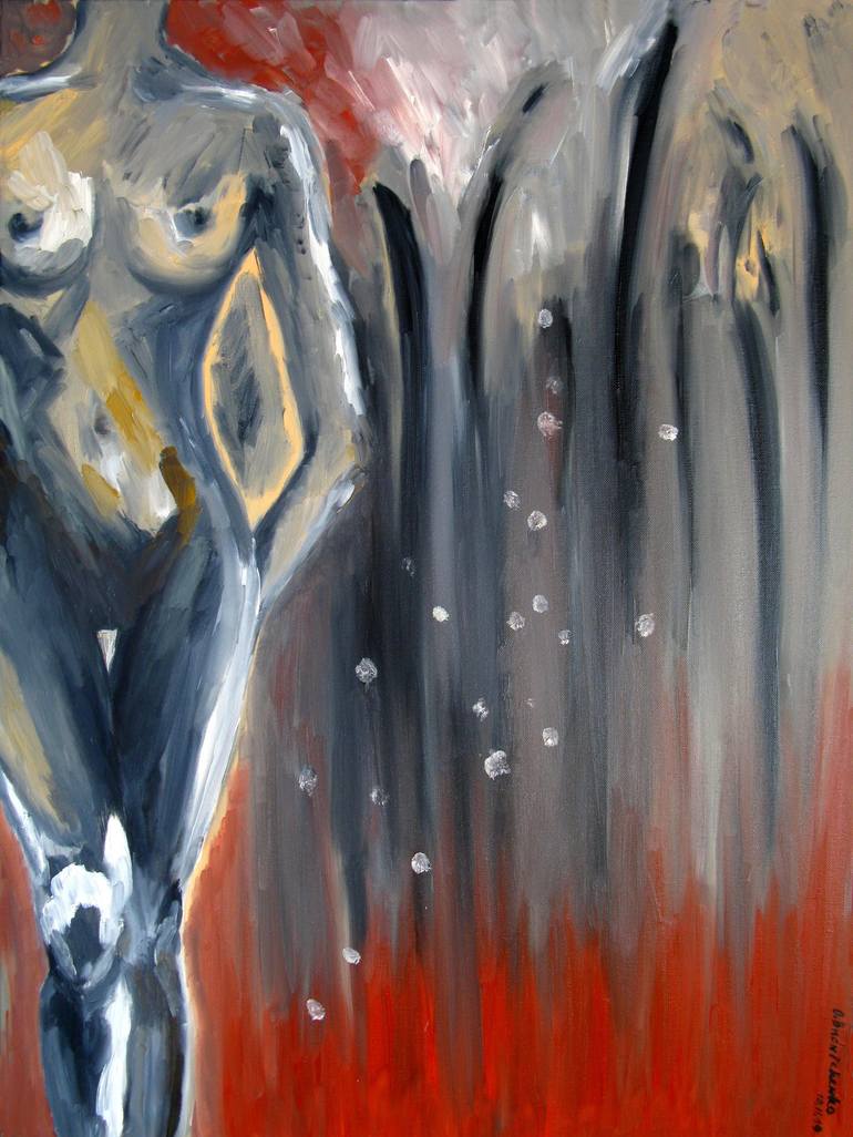 Expressionism. Symbolic composition. Venus, a woman - as a symbol of the energy of creation. After destruction, a new life is always born. After a tough, and sometimes destructive, transformation, a sprout of new life always appears on the ruins of the past.