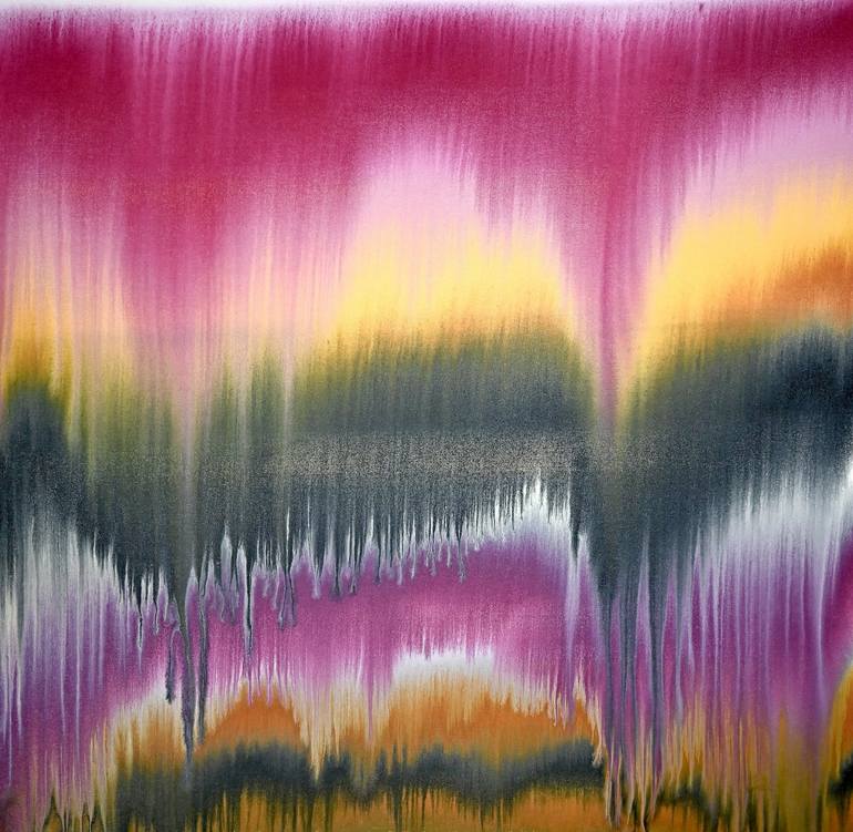 This artwork showcases an abstract composition of cascading magenta and deep yellow hues interlaced with earthy browns and black, creating a mesmerizing visual experience. Vertical streaks blend seamlessly, evoking the essence of gentle pouring of colours. The gradient effect is skillfully executed,...